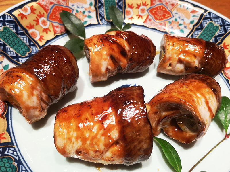 脂の乗った旬の鰤で、焼いたねぎを包んで、甘辛いタレで照り焼きにした一品!